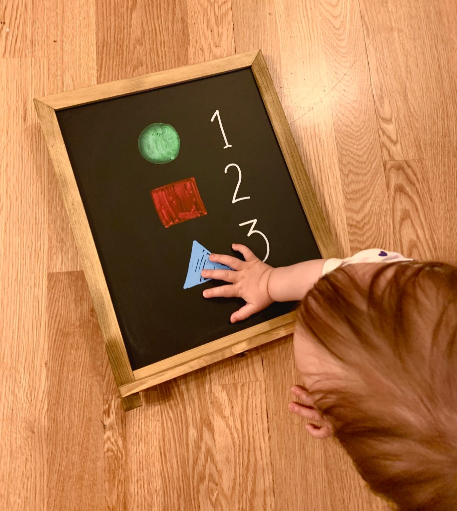 It’s much more engaging to teach your little one shapes, numbers and letters as they watch you draw them out in an assortment of colours. This way they will 100% want to try and doodle too! If your child is older you can teach spelling and words instead of just shapes, numbers and letters.